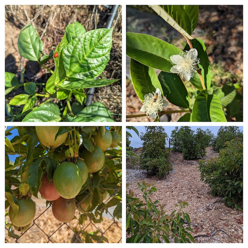 We intently practice no and low till, multi-crop cultivation of subtropical fruits and vegetables to provide a year around habitat for various pollinators, birds and food for soil microbiome.